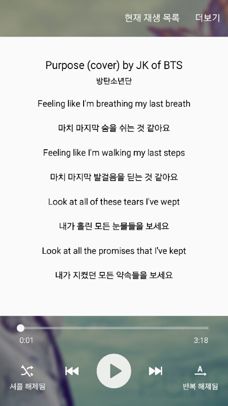 혹시 purpose 한국 가사랑 같이 있는거 갖고싶은 이삐있니..