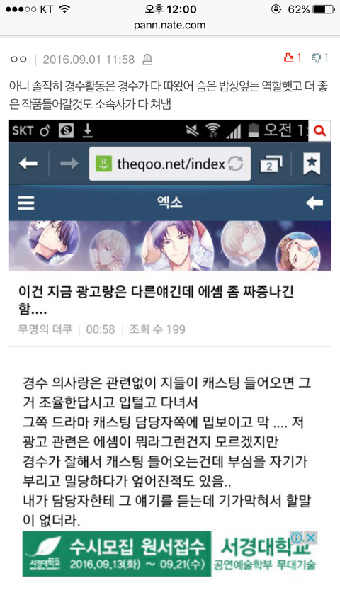에셈이서 들어온 시나리오 다 쳐낸다 그래서 안밀어준다 하는 개소리 좀 하지마 디오악개야