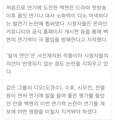 백현이 아이돌 연기 기사