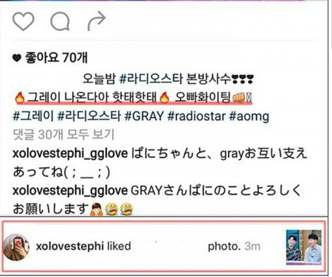자필 사과문 올리고 3일후에 그레이 인스타에 좋아요 눌렀음..