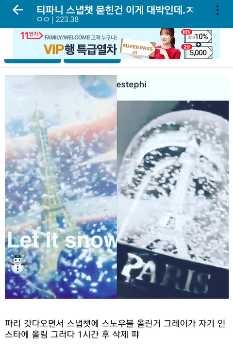 그레이랑 열애설도 난 마당에 지금 이 시기에 그러고 싶나??이걸보니깐 티파니 반성 하나도 안한다는걸 알 수 있음.