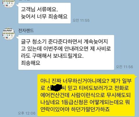 헐...울산아니냐며 죄송하다고하는데 거기서 하는말이 무조건 전자랜드쪽 잘못이 맞다며