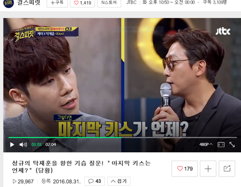 규스피릿에서 성규가 탁ㄱ구루님께 마지막 키스 드립쳤는데(ㅋㅋㅋㅋㅋㅋㅋㅋ)