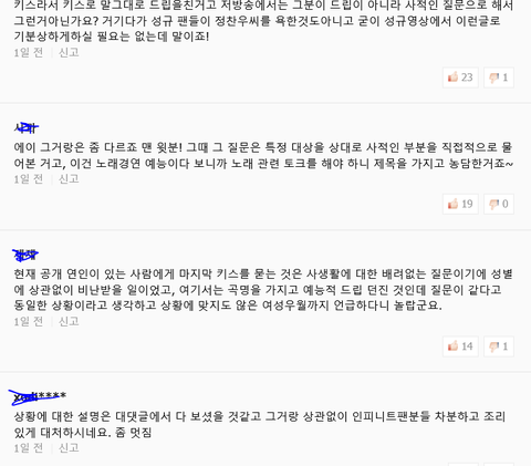이게 사소한걸로 보일수도 있는데 이런 사소한면에서부터 우리 이미지가 결정되는거자나.. 인슾들 이미지가 좋아지면 그게 또 인피니트 이미지에도 영향을 미칠 수 도있고!! 사소한거에도 저렇게 착하게 대응하신거보고 진짜 멋지다 생각...bb