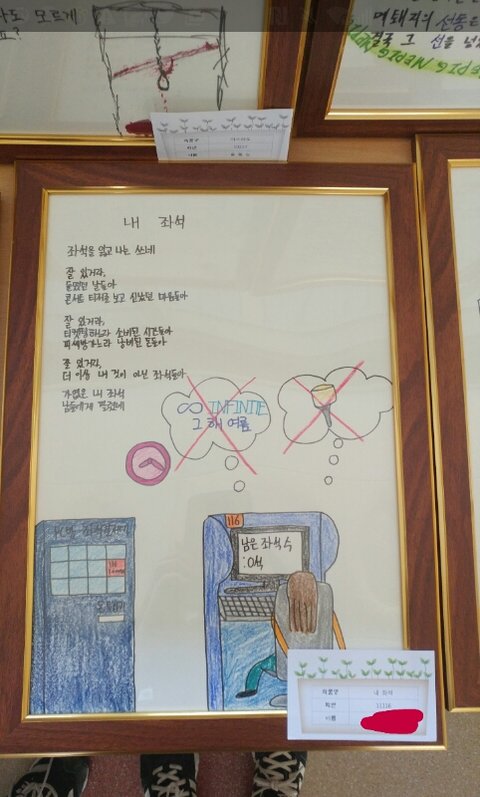 내일 축제때 만점받은 시화들은 전시되는데 내꺼 전시됐엌ㅋㅋㅋㅋㅋㅋㅋㅋㅋㅋㅋㅋㅋㅋㅋ 이영광을 인피니트에겤ㅋㅋㅋㅋㅋㅋㅋㅋㅋㅋ