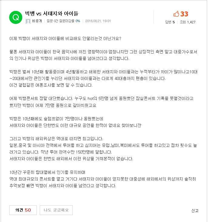 빅뱅 VS 서태지와 아이들