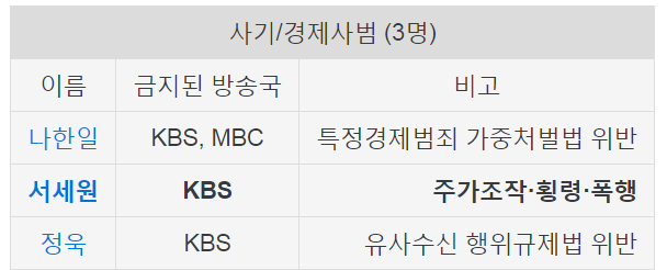 방송 퇴출된 경제사범들