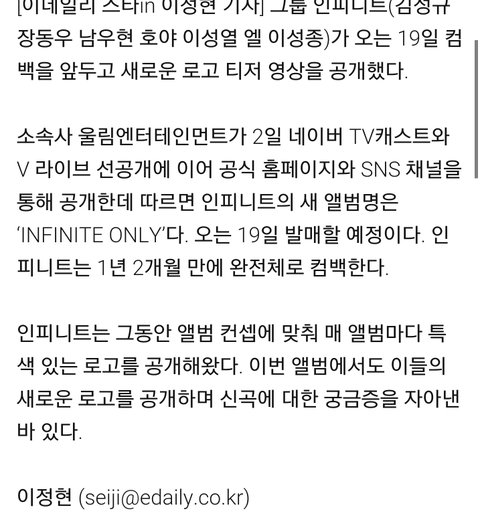 새 앨범명은 INFINITE ONLY
