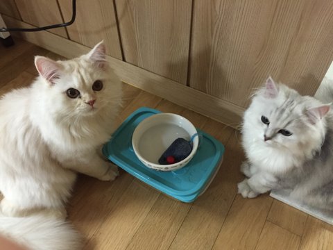 물그릇에 쥐돌이인형담근 사고뭉치 용덕커플