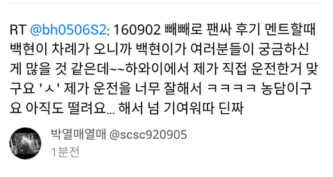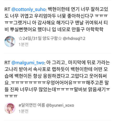 백현이가 왜 자기는 사진 이런거 쓰냐고 그래서 팬들이 귀엽다고