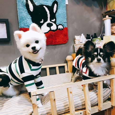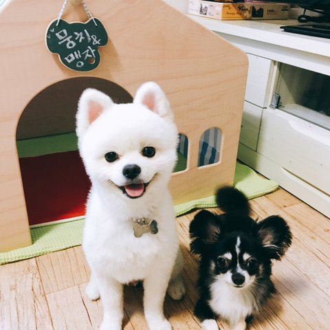 짧은 다리 맹자, 긴다리 뭉치에게 맞춰서 옷을 만들어 주었어여.색감 너무 이뿌죵??![]()