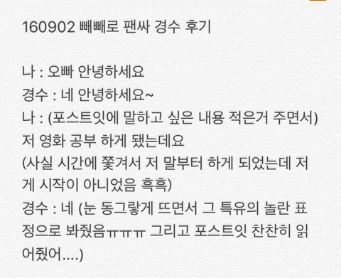 160902 빼빼로 팬싸 경수 후기