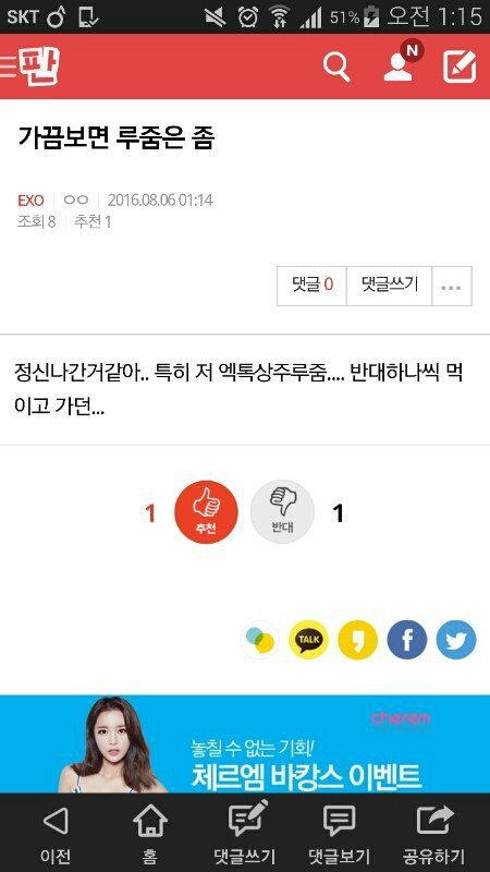 ㅆ1븧 어제 야자안하고 집에서 8시 30분쯤