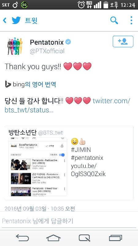 이분들 유명하셔 2015년에 제57회 그래미 어워드 베스트 어레인지먼트 인스트로먼트 오어 아카펠라 수상경력 있으신데 이 사람들이 방탄이들 팬이라는게 신기하기도 하고 뿌듯하기도 하고.. 진짜 우리한테만 슈스는 아닌가봐