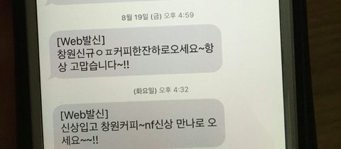 남편 핸드폰에 오피 홍보문자가 7월부터 주기적으로 와 있네요...