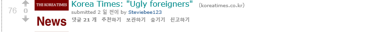 코리아 타임즈에서 쓴 글인, 한국사는 외국인들의 추한 행동을 담은 기사가 0점 받고 운지했다