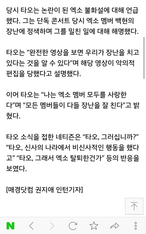 지금은 탈퇴한 중국인멤버 타오가 백현 손을 잡으니까 백현이 타오 손 쳐내고 더럽다는듯이 손터는거봐 와 진짜 백현 인성 더럽다 나같으면 진짜 상처 받았을듯