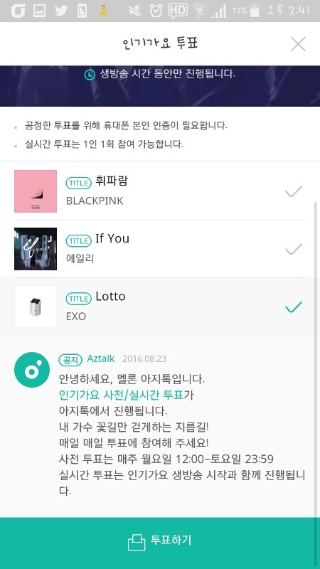 인1가 #1245 EXO 문투하고 아ㅈ1톡 가서 투표ㄱㄱ