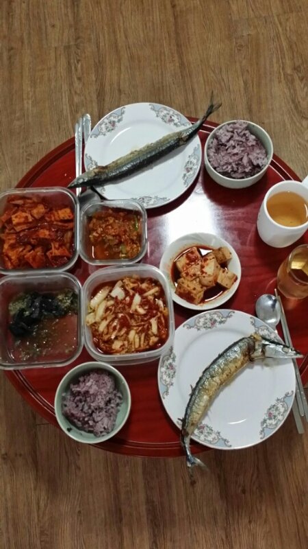 꽁치&배추겉절이&호박볶음&어묵볶음&가지볶음&두부조림&밥