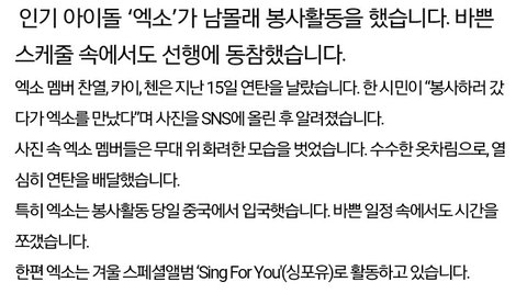 내가 이 글을 쓰는 이유는 일주일 내내 되도 않는 글 끌올해가며 엑소 머리채 잡으며 희희낙낙하던 너희들때문이야.