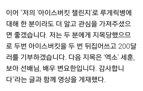 수호는 두 번 지목 됐다고 두 번 물 뒤집어쓰고 해당 재단에 200달러 기부함