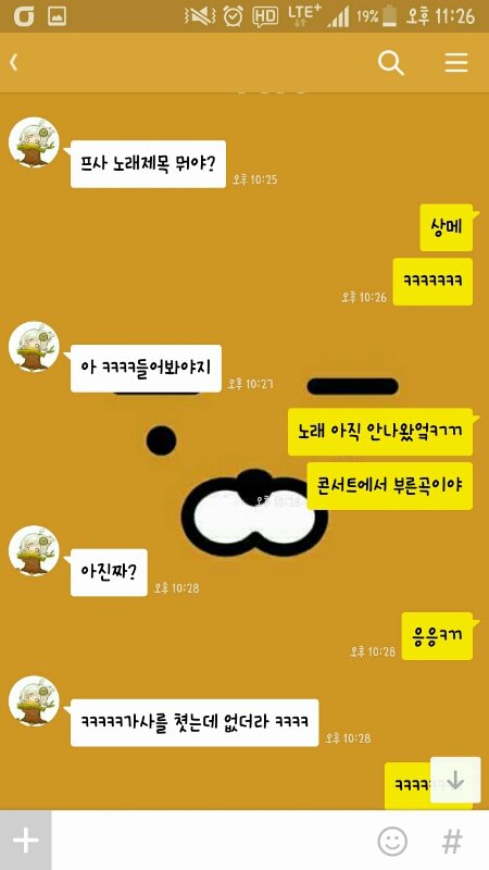 내가 프사에 마음에 묻다 가사올리고 상메 저렇게 해놯거든. 근데 프사에 제목이 짤려있어 그랬더니 사촌동생한테 이렇게 옴
