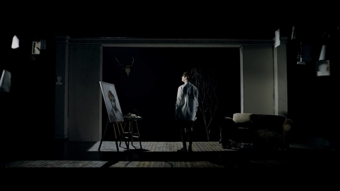 침대멀어지고 태형이로 추정되는 그림이 앞으로다가옴 다른 멤버사진으로도 추정되는 액자들