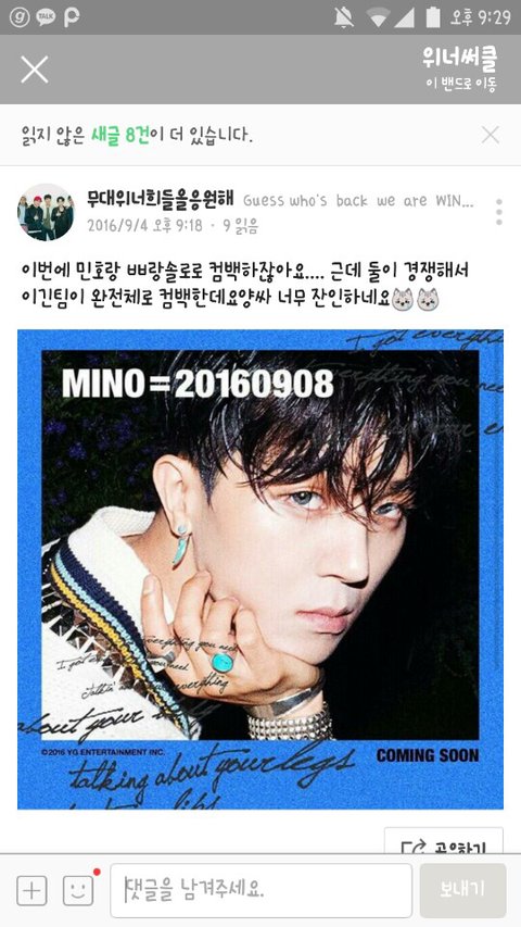 좀 흥분해서 말이 험해졌는데 우리 정말 열심히 준비한 민호 그리고 위너의 컴백을 위해서 열스 열투하자ㅠㅠㅠㅠㅠ!!! 화이팅!!