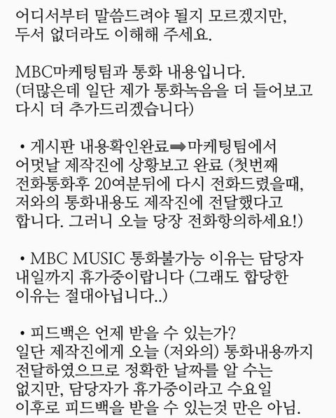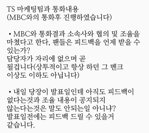 mbc마케팅팀이랑 톄스 통화내용떴는데