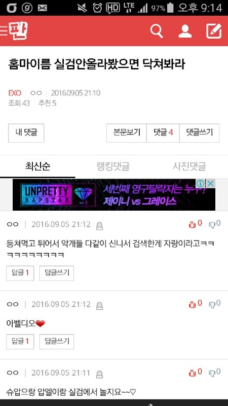 찌질이 탈덕충 엑소집착년이라 예전일도 세세하게 know하심♡♡♡