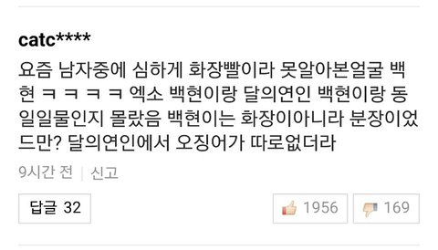 요즘 남자중에 심하게 화장빨이라 못알아본얼굴 백현 ㅋ ㅋ ㅋ ㅋ 엑소 백현이랑 달의연인 백현이랑 동일일물인지 몰랐음 백현이는 화장이아니라 분장이었드만? 달의연인에서 오징어가 따로없더라