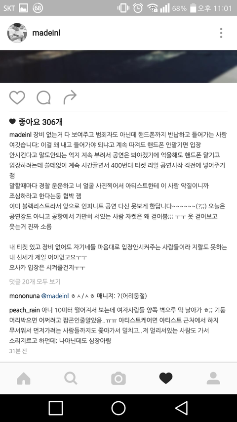 ????공연장을 왜 못들어가게 하는데 밑도끝도 없이
