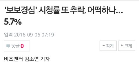 시청률 5.7% 자체 최저 시청률 갱신이래 와 5.7% 까지 떨어지다니 개충격