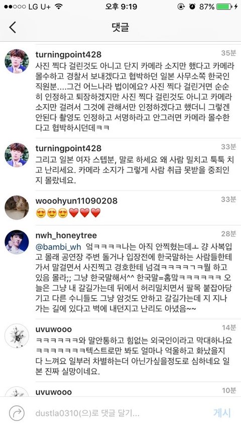 인스타에 홈마들 얘긴데 홈마가 아니여도 한국인이면 쳐다보고 그러고 여자경호는 치고 성희롱했단소리도있더라 한국팬이 한국아이돌보러간게 중죄야..?