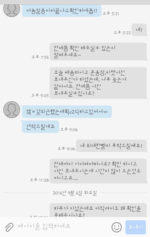 이게 문자내용 일부고, 아직 이 이후로 답이없어