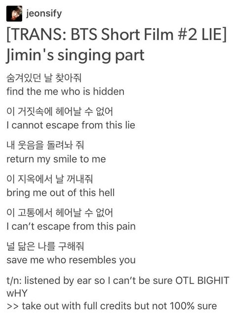 확실하진 않다고 했지만 영어로도 누가 번역해 놓은건데 읽을 수록 save me 가사가 파바박 떠올라서! 아래에 이삐도 남준이 날개 랩 라임 얘기 했는데 평소 노래 들을 때 느낌이랑 글로만 읽어보는 느낌이 막 다름..괜히 다 연결시키게 되네ㅋㅋㅋㅋ