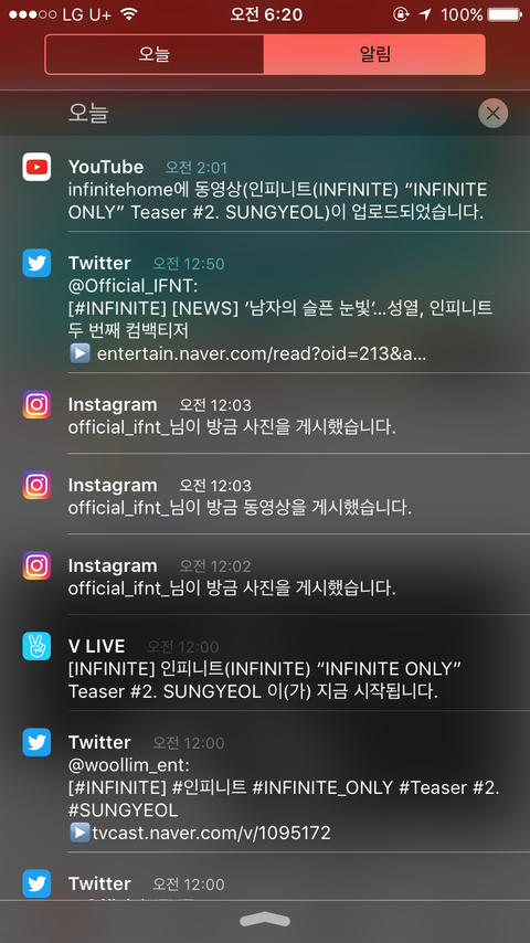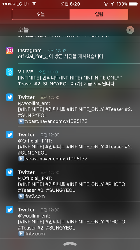 알람개많이옴 ㅋㅋㅋㅋㅋㅋㅋㅋㅋㅋㅋㅋㅋㅋㅋㅋ학생수니여서 어제피곤해서잤는데 아침에 핸드폰보고 놀램 ㅠ이번 컴백대박나자!