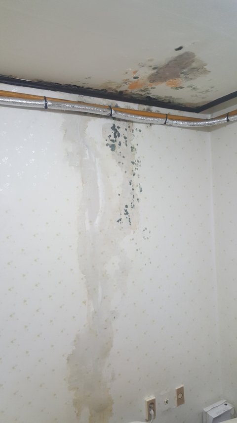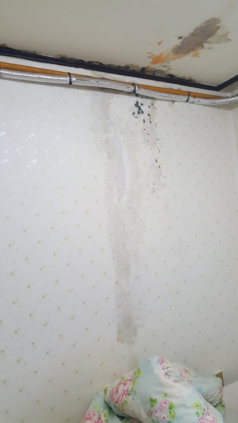 한 두어달 전 부터 작은 방 천장에 곰팡이가 피기 시작하더니 저번주에 보니 심하게 곰팡이가 피고 벽지가 다 젖어서 들뜨기 까지 했습니다.