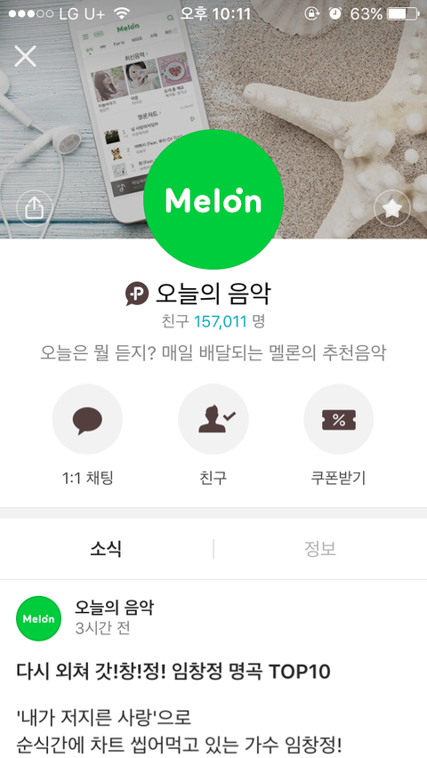 카카오7톡 친구 오늘의9음악 친추 누르고 쿠폰받기 누르기