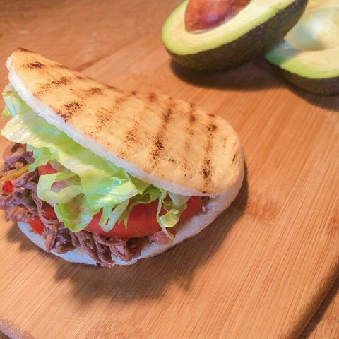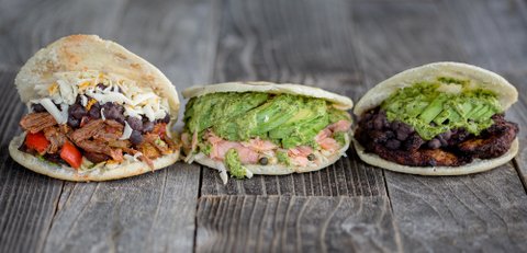 옥수수빵속에 칼집을 내서 타코나 햄버거처럼 속에 재료들을 채워먹는데 주로 아보카도와 치즈가 많이 사용되고 있어요.