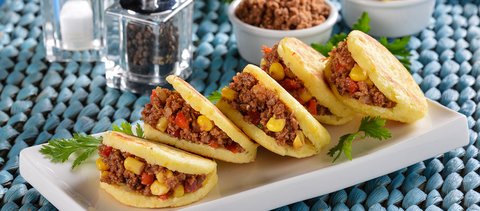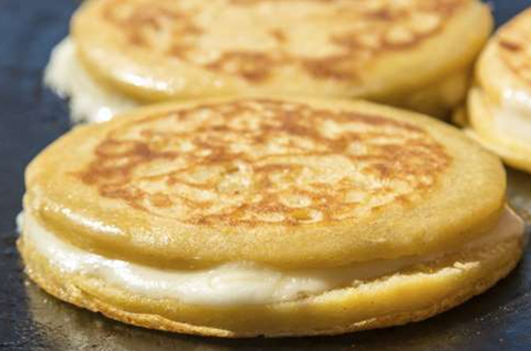 아레파는 콜롬비아랑 베네수엘라의 콘밀(옥수수가루)로 만드는 빵요리인데요. 만들기도 간단하고 인기가 있어서 남미 전역에서 먹고 뉴욕에서도 아레파 카페가 많아요.
