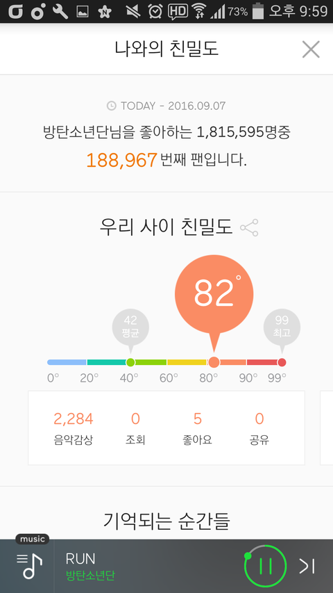 서양수박으로 갈아탄지 8일됐거든 오늘 방탄이랑 친밀도 82도됐엉!!! 99도인 이삐들도 있던데 그이삐들 부럽 나도 99도 될때까지 열스할게!!!