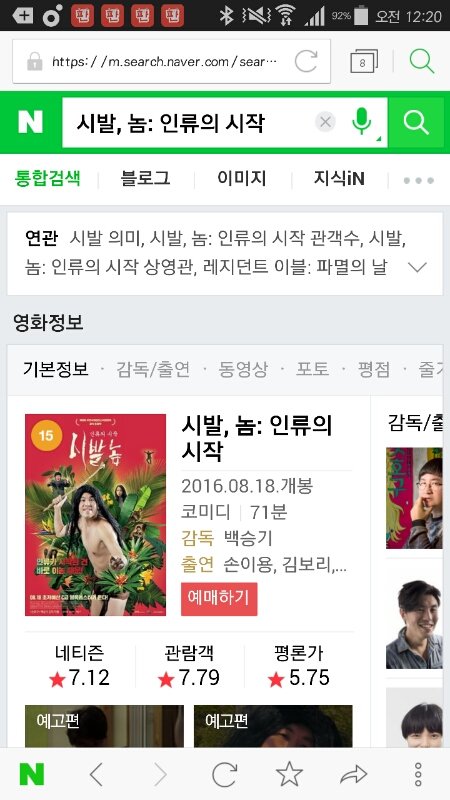 검색창에 시.발 쳤는데 저거 연검에뜨길래 눌러봤더니 영화 ㅅㅂㅋㅋㅋ