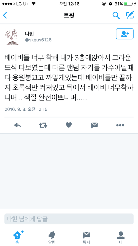 베이비분들은 모든무대에 야광봉이 꺼져있는걸 거의못봄(회사후배분들 무대 제외)