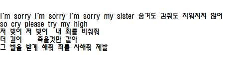 이게 최대한 알아낸 가사인데 try my high 이게 아닌거 같아서 발음 들리는대로