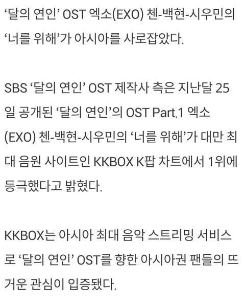 엑소(EXO) 첸-백현-시우민, ‘달의 연인’ OST ‘너를 위해’로 아시아 석권