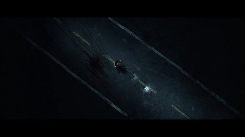 뛰어가는 윤기 뒤 아스팔트 바닥에 핏자국 여기서 정국이가 죽었단 것을 암시.