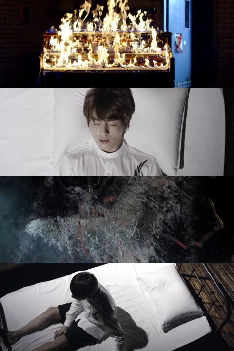 왜냐면 정국이는 꿈을 꿨거든 불타는 피아노와 윤기가 교통사고를 당할거라는것을..
