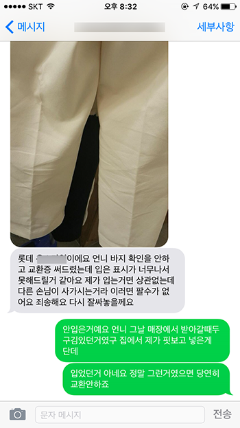 '지인A의 바지에 주름이 있다, 입었던 옷은 교환 못해주겠다 '