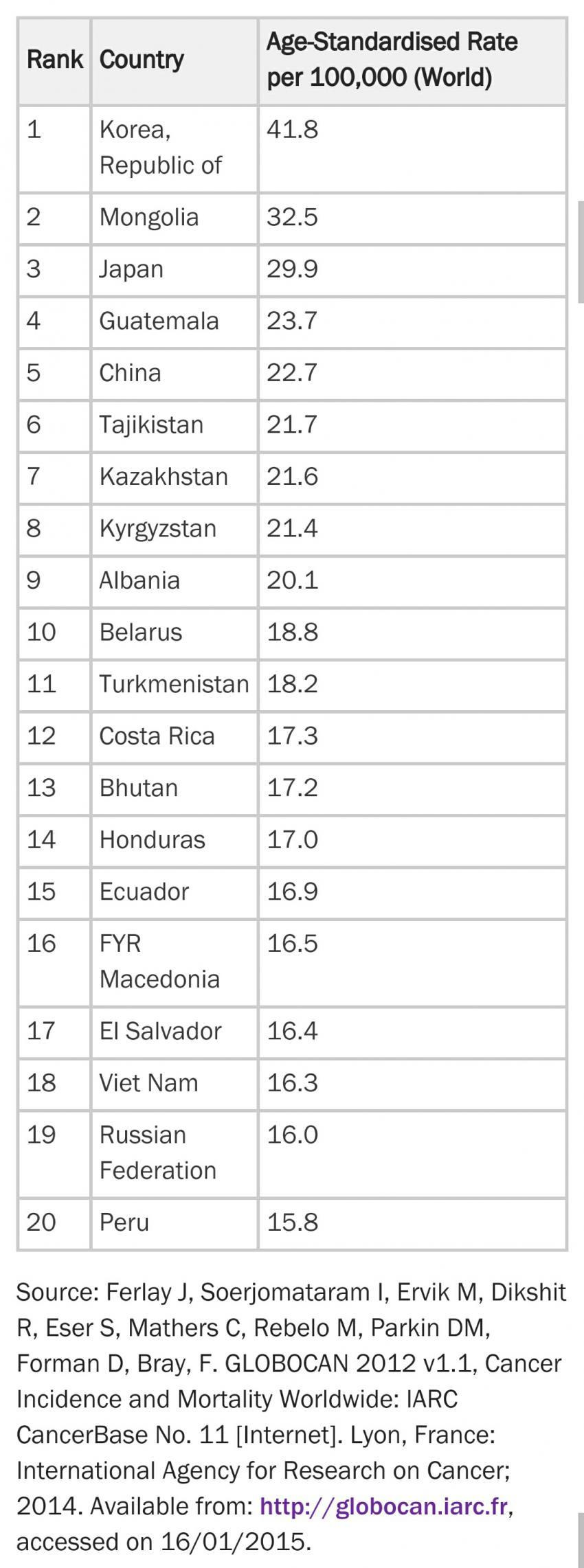 35회 세계 위암 발병률 순위